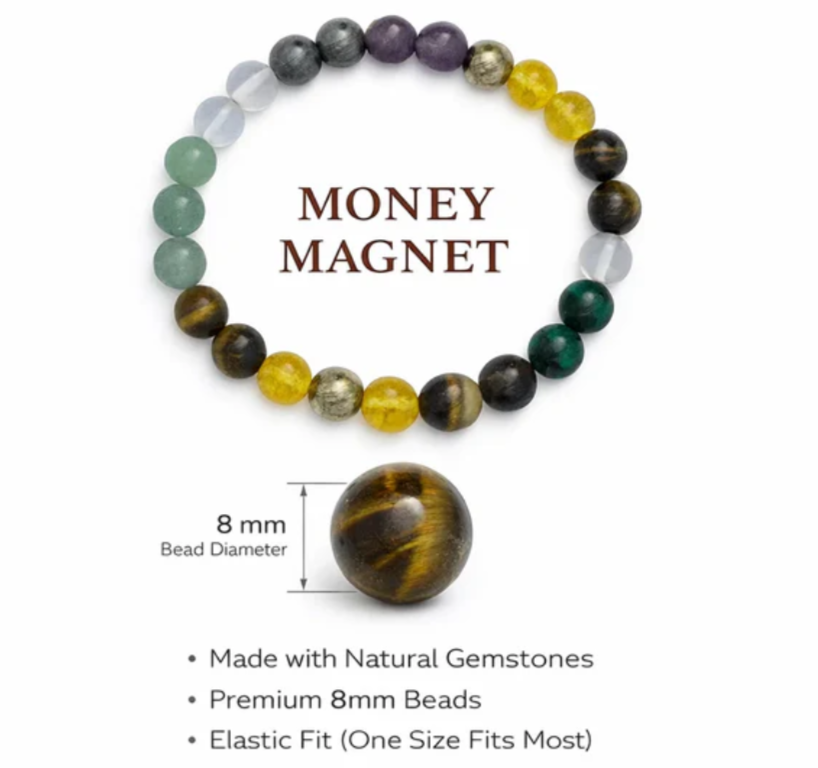 - 60-second intention: Hold the bracelet, breathe slowly, and affirm, “I am a magnet for wealth; success and abundance flow to me easily.” Then wear it