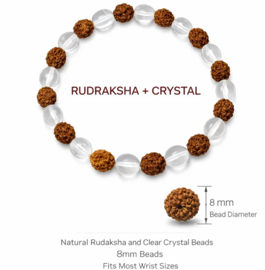 - Rudraksha Crystal Bracelet Block stress, negative energies and waves. Clears aura creates an awareness of the surrounding. Supports healing quickly.